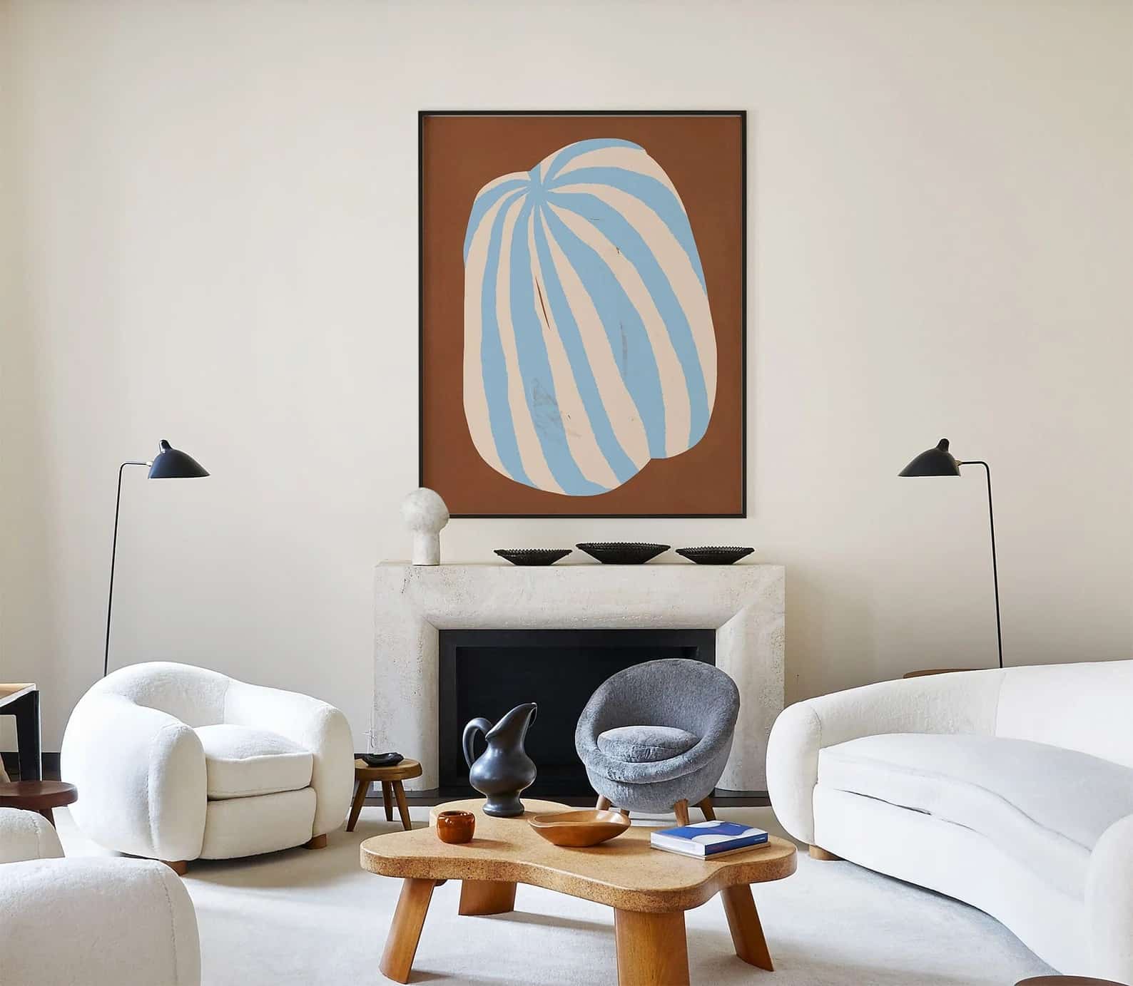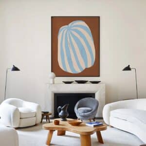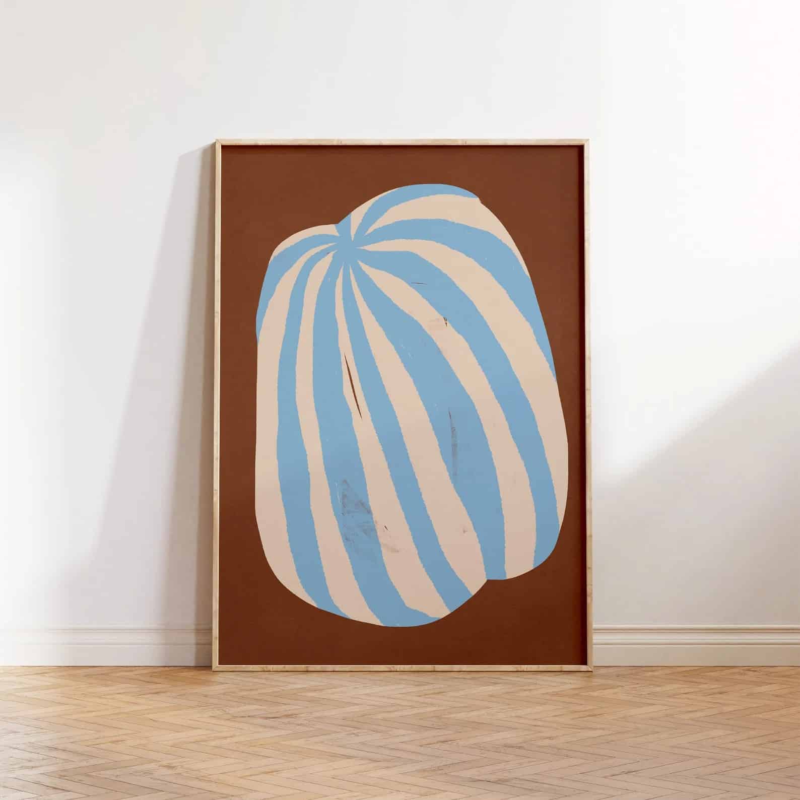 Cuadro abstracto de líneas marrón y celeste